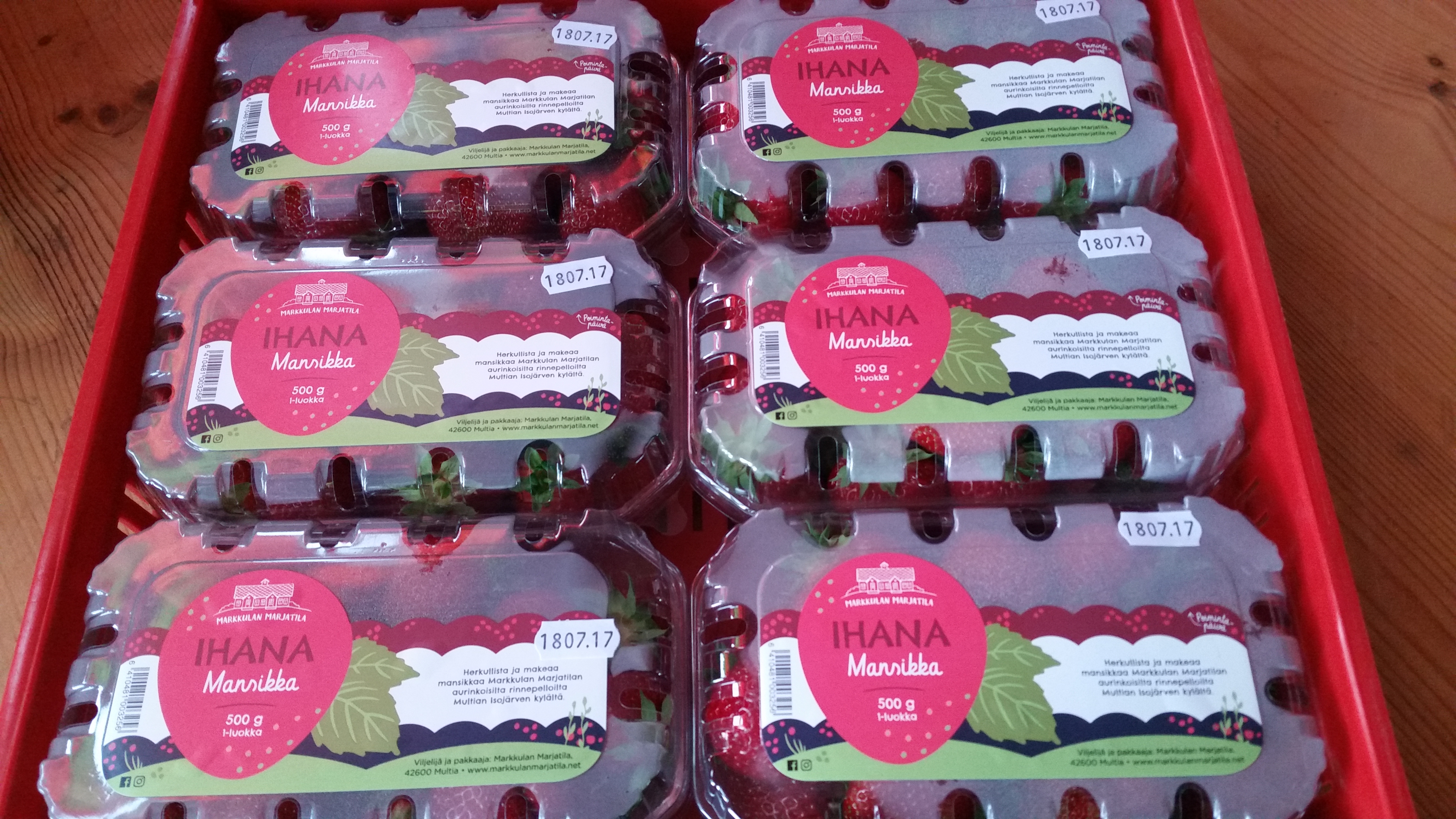 Markkulan Marjatilan visuaalista ilmettä päivitetään parhaillaan. Uudet etiketit somistavat jo 500 gramman mansikkarasioita, joita myydään Multian Salessa. Myös mehupullot ja glögi saavat uuden ilmeen ensi syksyn aikana.